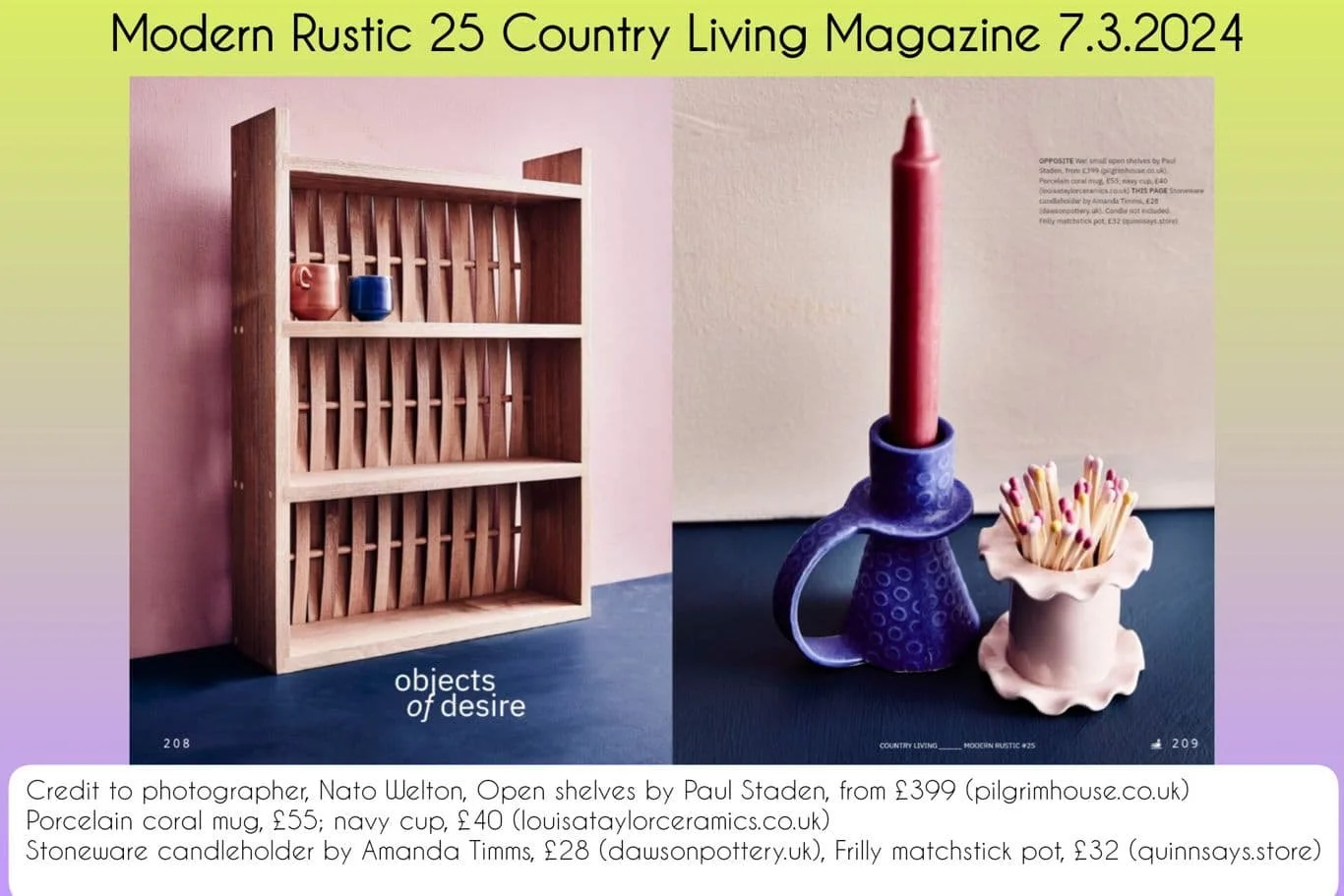 I was contacted out of the blue in February by stylist Alaina Binks, Style & Interiors Editor, Country Living magazine and asked for a prop loan of three of my pottery items, I was beyond excited I have never had a feature before.